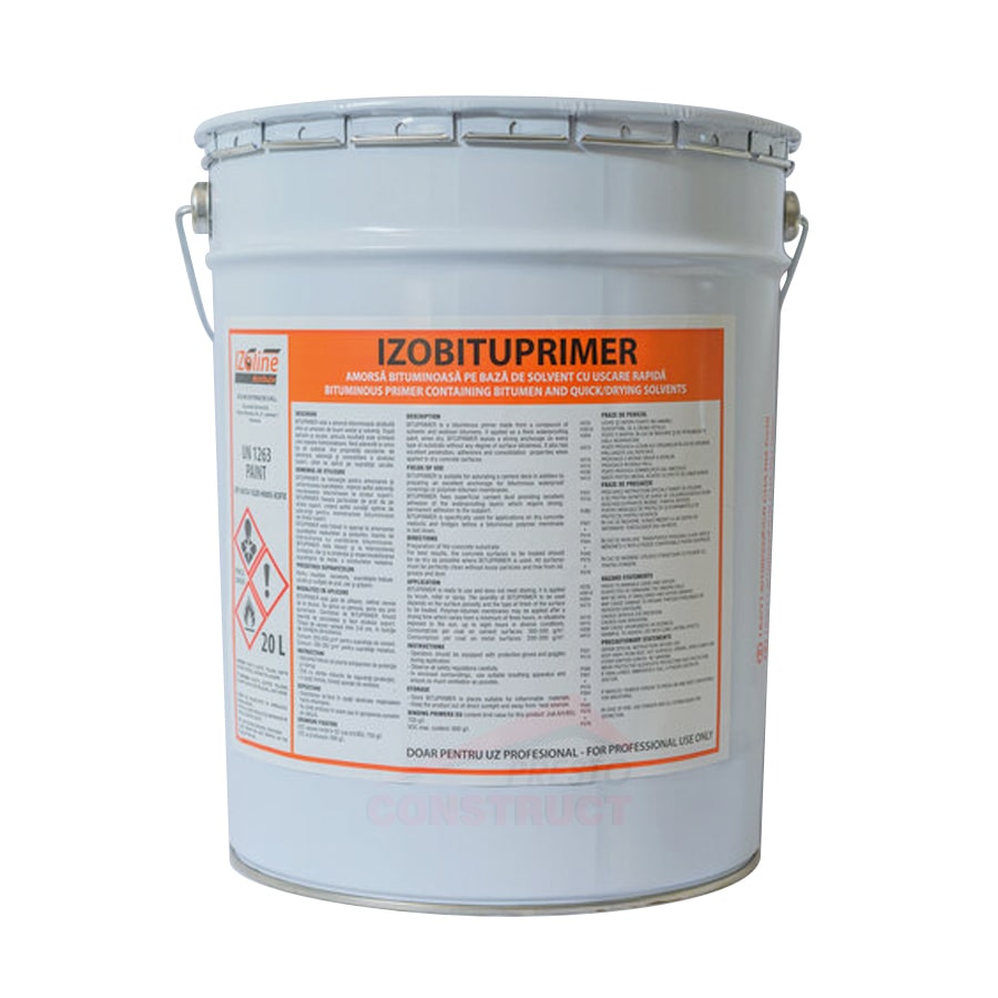 Izo Bituprimer este o amorsa bituminoasa bazata pe bitum oxidat şi solventi, ce poate fi folosita pentru tratarea suprafetei suport inaintea impermeabilizarii cu membrane bituminoase.